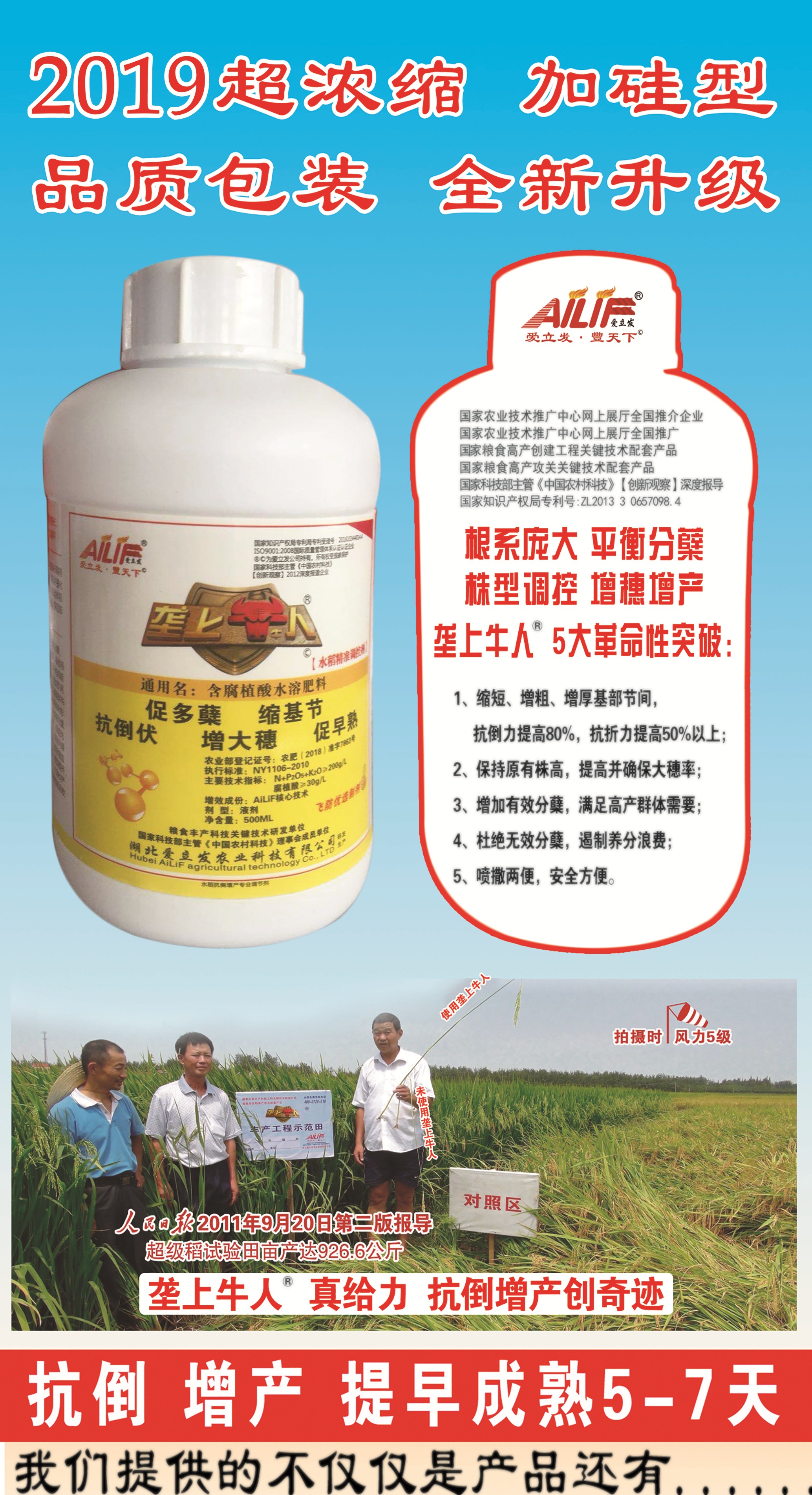 【900公斤非神話 種稻噴撒壟上牛人】公司代表產(chǎn)品--壟上牛人,解決了水稻抗倒與增產(chǎn)的完美結(jié)合。